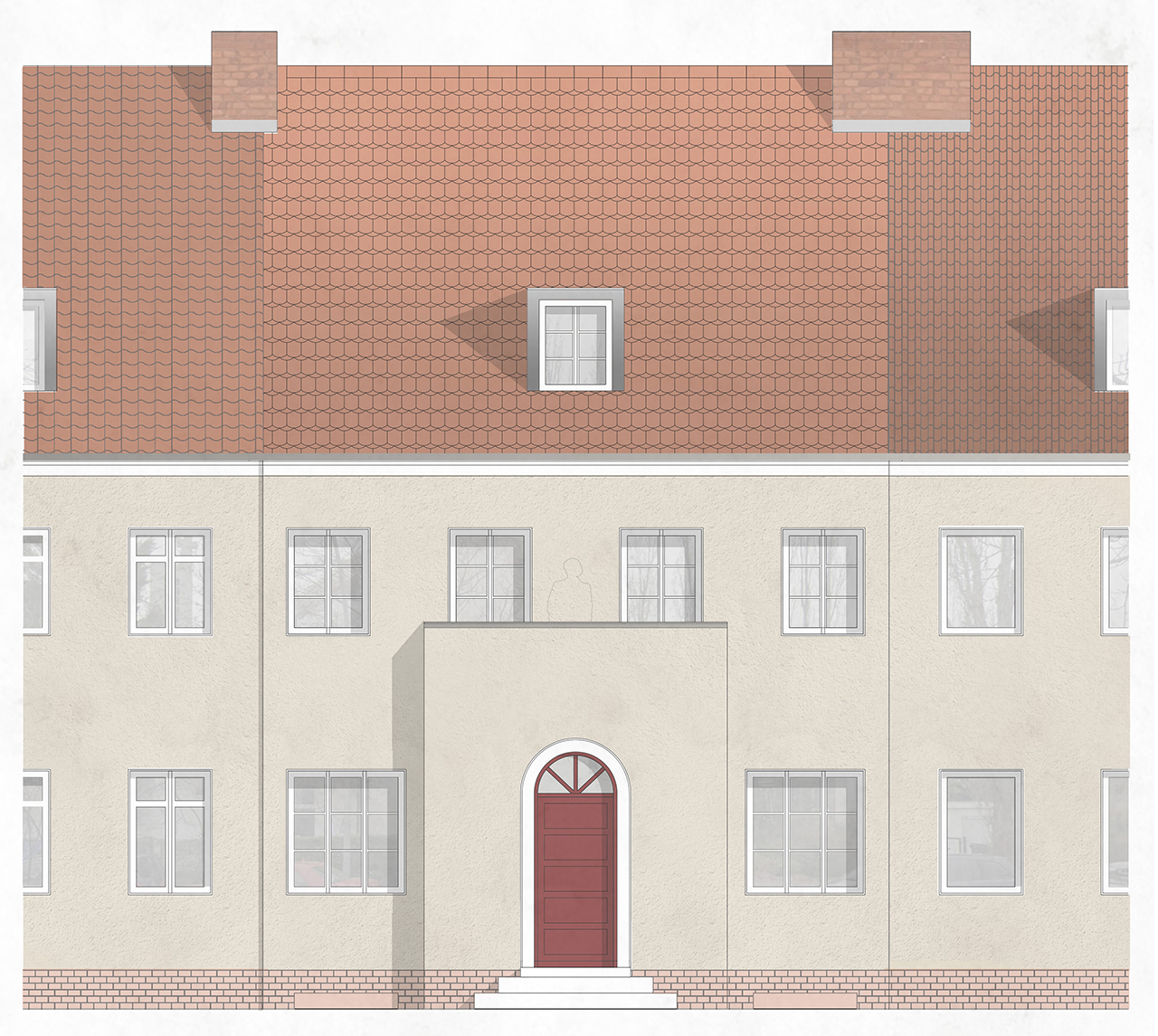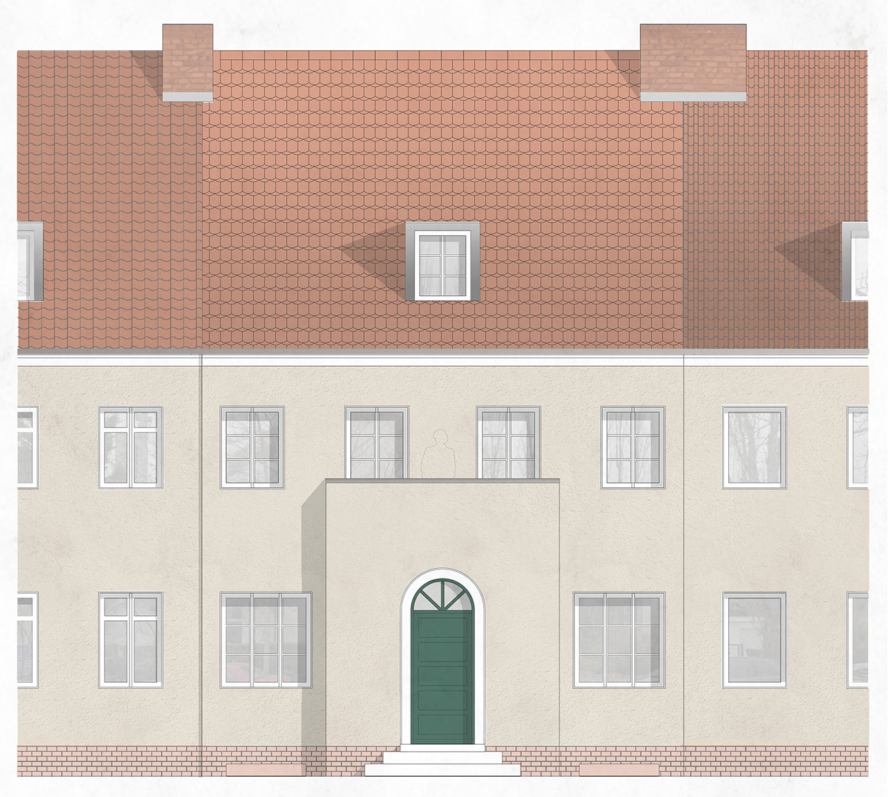 Das Gebäude wurde ca. 1928 von dem Architekten und Stadtplaner Fritz Bräuning für die „Gemeinnützige Tempelhoferfeld-Heimstätten GmbH“ geplant und errichtet. Das Objekt ist Teil der Wohnsiedlung Neu-Tempelhof, welche ab ca. 1911 auf dem westlichen Tempelhofer Feld neu erschlossen wurde. Die Umgebung ist durch eine aufgelockerte Bauweise mit niedrigen Doppel- und kleinen Reihenhauszeilen sowie dazugehörigen Gärten und Vorgärten gekennzeichnet. Durch die außergewöhnlich zentrale Lage der Gartenstadthäuser sind die Häuser heute sehr beliebt. Das bestehende Reihenmittelhaus wird umfassend saniert und im Innenraum umgestaltet. Die Gebäudehülle wird energetisch saniert und mit einer Fassadendämmung ausgestattet. Das Ziel ist es, einen möglichst hohen Energiestandard im Bestand zu erreichen. Sämtliche Fenster werden durch neue Fenster mit hohen Wärm- und Schallschutzstandard ausgetauscht. Die Fenster erhalten in Anlehnung an die Bestandsfenster Sprossen. Gestaltungselemente wie Faschen und Gesimse werden wiederhergestellt. Das neue Dach erhält ebenfalls eine neue Dämmung mit hohen Standards. Die Deckung erfolgt gemäß Erhaltungssatzung mit roten Biberschwanzziegeln. Die Dachgauben werden gemäß bauzeitlicher Ansichten hergestellt.